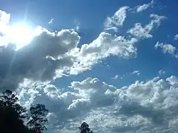 A cor do céu predominantemente azul durante o dia é um resultado direto de um fenômeno conhecido como Dispersão de Rayleigh, onde altas frequências presentes na luz solar, como o azul, são redirecionadas diretamente para o campo de visão do observador. Durante praticamente o dia todo, pelo fato da luz azul (menor comprimento de onda) ser dispersada com mais facilidade do que a vermelha (maior comprimento de onda). Quando a luz solar passa até o olho humano, a luz azul é redirecionada aos olhos. Pelo mesmo fato, o céu acaba por apresentar-se numa forma mais avermelhada quando passa por uma maior camada de ar, ou seja, quando apresenta-se no horizonte. A luz azul nesse caso, ao invés de redirecionada, está sendo dispersada e por esse motivo o céu fica avermelhado ao entardecer e amanhecer.[6]