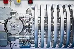 Nos aceleradores modernos a correia foi substituída por uma série de pequenos cilindros de aço inox ligados por isoladores de nylon. Estes cilindros receberam o nome de pellets, e os aceleradores que os utilizam são conhecidos como pelletrons.[2]