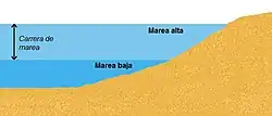 A amplitude da maré pode variar de poucos centímetros em mar aberto até mais de 16 metros em regiões como a Baía de Fundy, no Canadá. No Brasil, ela varia de cerca de 0,4 metros no litoral sul até cerca de 8 metros no litoral norte do Maranhão, especialmente em ambientes estuarinos.[2]