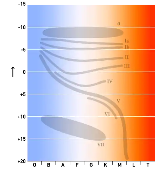 Os astrônomos classificam os objetos autoluminosos por classe espectral, uma distinção intimamente ligada à temperatura da superfície, e as anãs marrons ocupam as classes M, L, T e Y.[4][5] Como as anãs marrons não sofrem fusão estável de hidrogênio, elas esfriam com o tempo, passando progressivamente por tipos espectrais posteriores à medida que envelhecem.