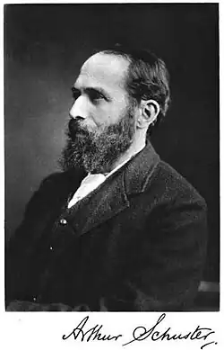 - ↑ Simpson, G. C. (1935). «Sir Arthur Schuster. 1851-1934». Obituary Notices of Fellows of the Royal Society. 1 (4). 408 páginas. JSTOR 768973. doi:10.1098/rsbm.1935.0006