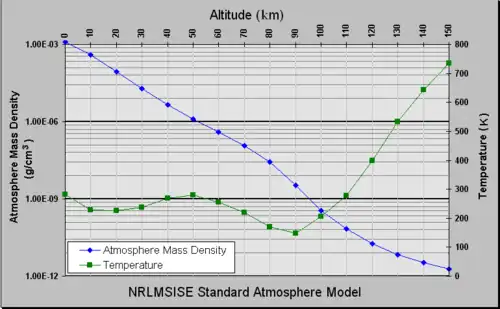 O limite onde os efeitos atmosféricos são notáveis durante a reentrada atmosférica, fica em torno de 120 km de altitude. A altitude de 100 quilômetros, conhecida como a linha Kármán, também é usada frequentemente como o limite entre atmosfera e o espaço exterior.