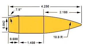 - ↑ «The Effect of Boattail Geometry on the Yaw Limit Cycle of Small Caliber Projectiles by Bradley E. Howell Data Matrix Solutions, Aberdeen Proving Ground, MD 21005-5066 and Sidra I. Silton and Paul Weinacht Weapons and Materials Research Directorate, ARL, Aberdeen Proving Ground, MD 21005-5066 27th AIAA Applied Aerodynamics Conference 22 - 25 June 2009, San Antonio, Texas» (PDF). Consultado em 11 de janeiro de 2015. Cópia arquivada (PDF) em 6 de abril de 2016