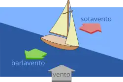 Sotavento é o lado oposto ao lado do qual sopra o vento. Quando se veleja com o vento entrando pela valuma ou em popa rasa, o lado de sotavento é o lado em que está sua vela grande.[nota 1]