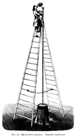 Uma ilustração do experimento (apócrifo) do barril de Pascal
