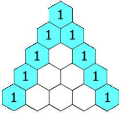 O triângulo de Pascal. Cada número representa a soma dos dois directamente acima dele. O triângulo demonstra muitas propriedades matemáticas, além de mostrar os coeficientes binomiais.