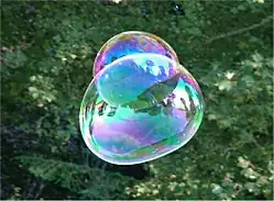 Bolha de sabão é uma película muito fina de sabão e água em forma de esfera e de superfície iridescente. Normalmente as bolhas de sabão duram apenas alguns segundos e logo explodem por si mesmas ou por contato com outro objeto. Muitas vezes são usadas como objeto de jogos para crianças, porém seu uso em espetáculos artísticos demonstra que também podem ser fascinantes para os adultos. Podem também ajudar a resolver problemas matemáticos complexos sobre o espaço, já que sempre se busca a menor área de superfície entre pontos ou arestas.[1]