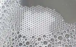 As películas de sabão buscam minimizar sua área de superfície, ou seja, minimizar sua energia de superfície. O melhor design para uma bolha isolada é uma esfera. Grupo de muitas bolhas em uma espuma tem formas muito mais complicadas.