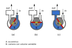 Neste tipo de bomba, o gás é manipulado usando-se movimentos repetitivos de peças mecânicas, sincronizados com a abertura e fechamento de válvulas, que deslocam o gás da entrada até a saída em pequenas e discretas quantidades, com uma alta taxa de repetição e com alguma compressão.