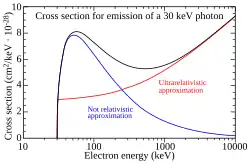onde é o número atômico, a constante de estrutura fina, a constante de Planck reduzida e a velocidade da luz. A energia cinética do elétron nos estados inicial e final está conectada à sua energia total ou aos seus momentos via