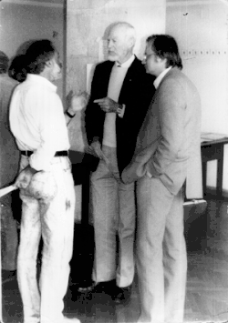 ![]() Bryce DeWitt (centro) com Grigori A. Vilkovisky (esquerda) e Andrei O. Barvinsky (direita) no 5º Seminário sobre Gravidade Quântica, Moscou, 28 de maio a 1 de junho de 1990 | |