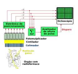 2. 1 2 3 4 5 6 7 8 9 10 11 12 13 14 International Atomic Energy Agency (2020). «Cap 4.1 - Gamma camera». Nuclear medicine resources manual (PDF). Col: IAEA Human Health series no. 37 (em inglês). Viena: IAEA. p. 29. ISBN 9789201609199. Consultado em 27 de agosto de 2022