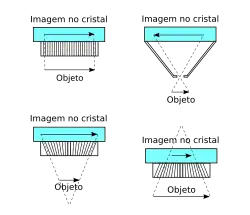 Os colimadores pode ser trocados e a escolha do tipo mais adequado está relacionado à forma como a imagem será formada no cristal, por exemplo um colimador com furação convergente amplia a imagem, enquanto um divergente diminui a imagem.[1][2][3][4]