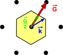 onde é o vetor ligando dois pontos na rede recíproca. Observa-se, então, que todos os vetores de onda que partem do centro da célula e encontram sua fronteira satisfazem essa condição e exitirá um pico de difração para o comprimento de onda dado por
