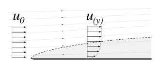 Os estados aproximados em que, para um suficientemente elevado número de Reynolds, o fluxo sobre a superfície pode ser dividido em uma região exterior de fluxo não-viscoso afetada pela viscosidade (a maior parte do fluxo), e uma região perto da superfície onde a viscosidade é importante (a camada limite). Faz-se e ser o fluxo montante e transversal (parede normal), respectivamente, com velocidades dentro da camada limite. Usando-se análise de escala, pode-se mostrar que as equações de movimento acima reduzem-se dentro da camada limite para se tornarem