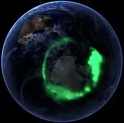 Uma aurora austral em 11 de setembro de 2005 vista do espaço por um satélite da NASA