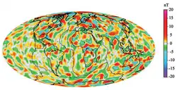 Um modelo das características de comprimento de onda curtas do campo magnético da Terra, atribuído a anomalias litosféricas[64]