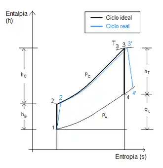 | Brayton (Turbina) | adiabático | isobárico | adiabático | isobárico |