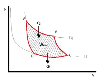 Analisando o diagrama PV do ciclo de Carnot, temos que:[2]