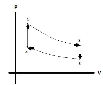 - Esquerda e direita do ciclo: par de processos isocóricos