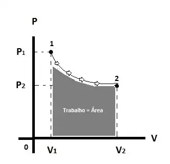 Um sistema termodinâmico pode trocar energia com suas vizinhanças mediante transferência de calor, ou pelo trabalho mecânico realizado. Quando um sistema com pressão P se expande de um volume V1 até um volume V2, ele realiza um trabalho W dado pela integral de P em relação ao volume. Se a pressão permanece constante, o trabalho realizado é igual a P vezes a variação de volume. Um valor negativo de W significa que o trabalho é realizado sobre o sistema.