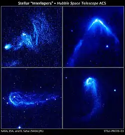 Outro exemplo é o objeto de raio X Vela X-1, ao redor do qual as técnicas fotodigitais apontaram a presença de uma típica hipérbole de choque em arco.