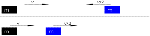 Por conseguinte, as velocidades do centro de massa antes e depois da colisão são: