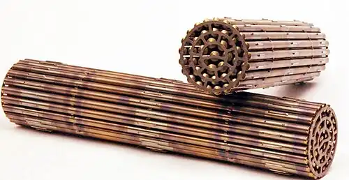 O metal das bainhas depende do desenho do reator - no passado se utilizava aço inoxidável, mas atualmente a maioria dos reatores empregam uma liga de zircônio. Para os tipos mais comuns de reatores (BWR e PWR), os tubos são montados em faixas tendo distâncias e espaçamentos precisos. A estas faixas se atribui um número de identificação único, que permite sua rastreabilidade em todo o ciclo (da fabricação, até sua estocagem após o uso).