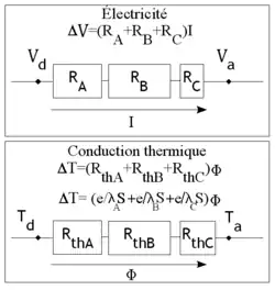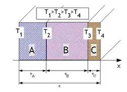 e é a resistência que é aditiva quando várias camadas condutivas situam-se entre as regiões quente e fria, porque e são as mesmas para todas as camadas. Em uma partição de multicamadas, a condutância total está relacionada com a condutância de suas camadas por: