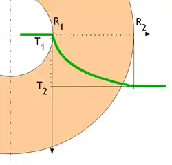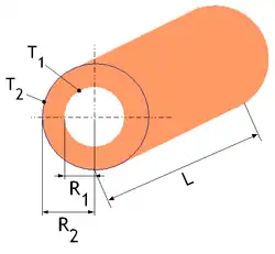 Condução através de cilindros pode ser calculada quando conhece-se variáveis tais como o raio interno , o raio externo , e o comprimento notado como .