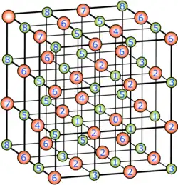 A distância entre vizinhos é a, e então podemos escrever a constante de Madelung para um íon como