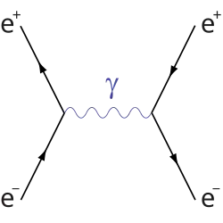 Outro exemplo ilustrativo é o processo de aniquilação elétron-pósitron. Um par elétron-pósitron pode se aniquilar formando um fóton virtual que decai formando um novo par elétron-pósitron.[1] Este processo está diretamente relacionado às flutuações quânticas do vácuo.