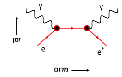 A aniquilação deste par também pode resultar na produção de fótons reais. Para conservar energia e momento, dois fótons são produzidos, embora seja possível gerar três fótons também.[1] Neste caso, o diagrama de Feynman mostra dois fótons saindo do diagrama.