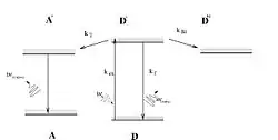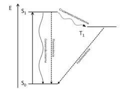 Um digrama de Jablonski, denominado em homenagem ao físico polonês Aleksander Jabłoński, é um diagrama que ilustra os estados energéticos de uma molécula e as transições entre eles. Os estados são arranjados verticalmente por energia e agrupados horizontalmente por multiplicidade de spin. Os processos fotofísicos que levam à desativação do estado excitado podem ser divididos em transições radiativas (indicadas por flechas retas) e transições não radiativas (indicadas por flechas onduladas). A emissão de radiação na qual a espécie formada tem a mesma multiplicidade de spin que o estado excitado é chamada fluorescência, enquanto o processo com mudança de multiplicidade é denominado fosforescência.[1] A conversão interna e o cruzamento intersistema são exemplos de transições não radiativas. Na conversão interna não há mudança de spin entre os estados energéticos envolvidos nas transições, diferentemente da conversão intersistema, onde há mudança de spin. Os estados fundamentais vibracionais de cada estado eletrônico são indicados por linhas grossas e, os estados vibracionais mais altos, por linhas mais finas[2].