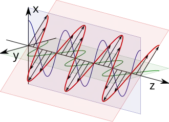 A luz linearmente polarizada é composta de duas componentes circularmente polarizadas de mesma intensidade. Em cada uma dessas componentes, o vetor eletromagnético roda na direção de propagação. Observando-se o perpendicularmente a variação no vetor elétrico com o tempo, percebe-se que a ponta deste vetor segue uma hélice, rodando no sentido horário para a luz polarizada circularmente para a direita e anti-horário para a esquerda. A absorção de luz não polarizada é descrita pela absorbância, , definida como[1][4]