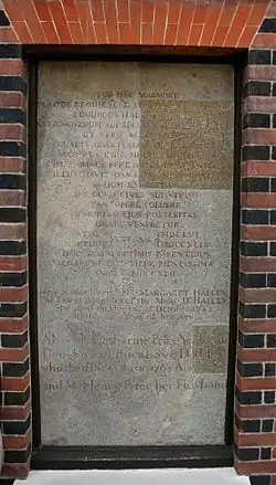 Placa sepulcral de Edmond Halley, atualmente localizada no Observatório Real de Greenwich; Halley não está sepultado lá, mas em St Margaret's, Lee, a 30 minutos a pé do observatório