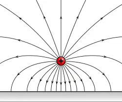 O estudo dos campos elétricos criados por cargas estacionárias é chamado de eletrostática. O campo pode ser visualizado por um conjunto de linhas imaginárias cuja direção em qualquer ponto é a mesma que a do campo. Esse conceito foi introduzido por Faraday,[47] cujo termo "linhas de força" ainda é ocasionalmente utilizado. As linhas de campo representam os caminhos que uma carga positiva pontual percorreria se fosse forçada a se mover dentro do campo; são, no entanto, um conceito imaginário sem existência física, e o campo permeia todo o espaço entre as linhas.[47] As linhas de campo que emanam de cargas estacionárias possuem várias propriedades importantes: primeiro, elas se originam em cargas positivas e terminam em cargas negativas; segundo, elas devem entrar em qualquer bom condutor em ângulo reto; e terceiro, elas nunca podem se cruzar nem formar circuitos fechados.[25]:479