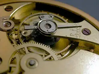 O chamado "cabelo" de um relógio mecânico (ao centro, sob o suporte superior) nada mais é do que uma fina mola em espiral com uma de suas pontas fixa à estrutura de ajuste (veja a escala ao lado do parafuso) e a outra ligada a uma roda dentada (a concêntrica ao cabelo) e através desta ao mecanismo que move os ponteiros do aparelho de forma periódica. Juntas mola e roda integram um oscilador massa mola, onde energia potencial elástica é convertida em cinética de rotação e vice-versa em intervalos de tempo muito precisos, estabelecendo assim um padrão para a marcação do tempo.