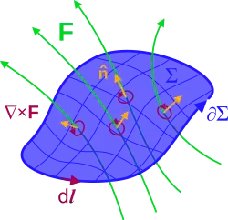 Pelo teorema de Stokes podemos reescrever as integrais de linha dos campos ao redor da curva de controle fechada ∂Σ para uma integral da "circulação dos campos" (ou seja, seus rotacionais) sobre uma superfície que ela delimita, ou seja,