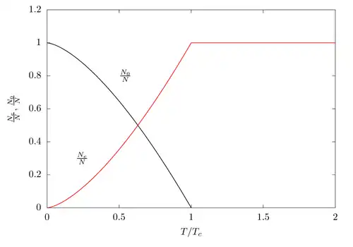 A temperatura crítica, ou de Bose-Einstein, , é a temperatura em que acima dela todos os bósons estão em um estado excitado, e pode ser encontrada tomando , onde , assim, da última equação,