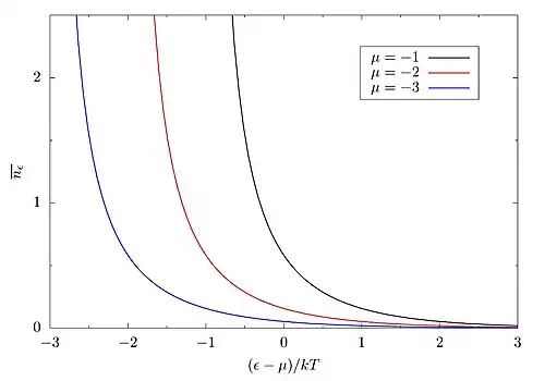 A estatística de Bose-Einstein reduz-se à estatística de Maxwell-Boltzmann para energias: [4][5].