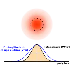 onde é a intensidade no centro do feixe em sua cintura.