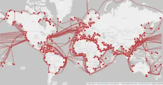 - ↑ «Como a internet passa de um continente para o outro?». TecMundo - Descubra e aprenda tudo sobre tecnologia. Consultado em 27 de novembro de 2015