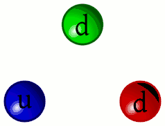 Então foi descoberto que os prótons e nêutrons não eram as partículas fundamentais, e que eram formados de quarks, e que a atração entre nucléons era efeito colateral do que ocorria dentro deles, fazendo os quarks ficarem unidos. A teoria da cromodinâmica quântica, e que os quarks transportavam o que era chamado carga de cor, embora não tenha nenhuma relação com a luz visível, quarks com cor diferentes se atraem como resultado da forte interação que é mediada por partículas chamadas de glúons.