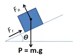 para um objeto no ponto de deslizar, onde θ é o ângulo entre o declive e a horizontal.