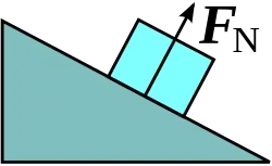 Quando um objeto está em repouso em plano inclinado, a força normal é perpendicular ao plano que o objeto está apoiado. Ainda assim, a força normal será necessária para prevenir que o objeto afunde através da superfície, presumindo que a superfície seja robusta o suficiente. A intensidade da força normal pode ser calculada como: