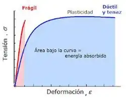 - A tenacidade pode estar relacionada com a fragilidade segundo o módulo de elasticidade, mas em princípio um material pode ser tenaz e pouco frágil (como certos aços) e pode ser frágil e nada tenaz (como o barro cozido, o material dos tijolos).