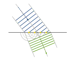 A partir deste princípio, é possível concluir que, em um meio homogêneo e com as mesmas características físicas em toda sua extensão, a frente de onda se desloca mantendo sua forma, desde que não haja obstáculos. Partindo do Princípio de Huygens, podemos explicar fenômenos ondulatórios como a refração e a difração.