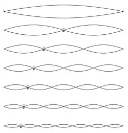![]() A requência fundamental e os sobretons que formam a série harmônica de um som. | |