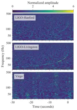 - 1 2 3 4 Abbott, B. P.; et al. (LIGO Scientific Collaboration & Virgo Collaboration) (16 de outubro de 2017). «GW170817: Observation of Gravitational Waves from a Binary Neutron Star Inspiral». Physical Review Letters. 119 (16). doi:10.1103/PhysRevLett.119.161101